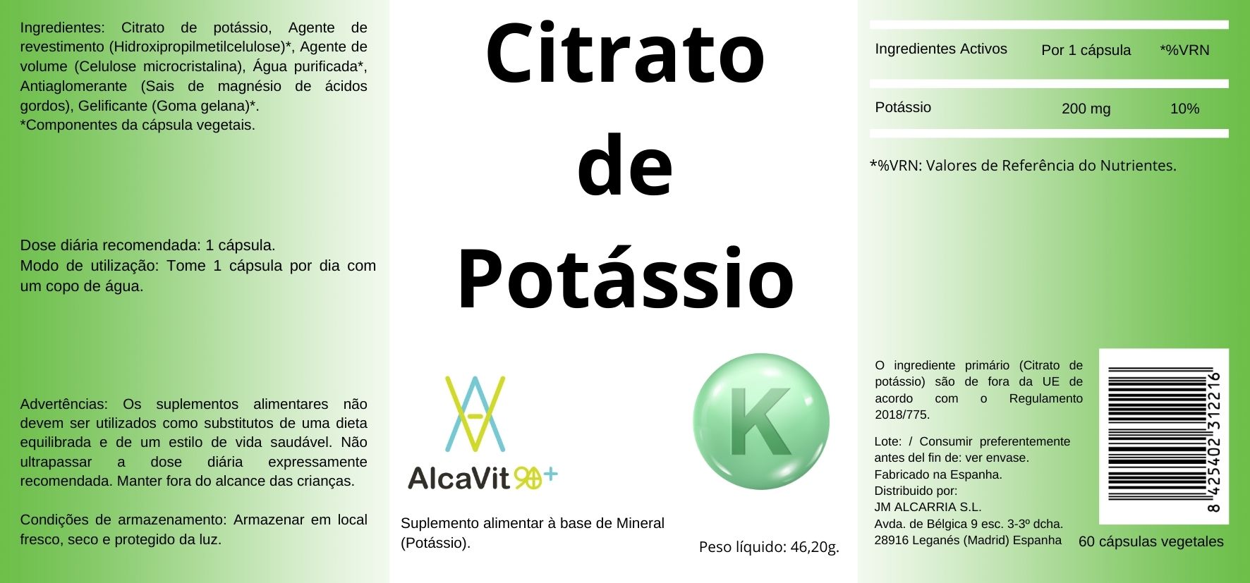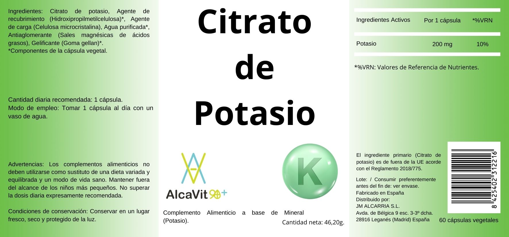 CITRATO POTASIO 60CAPS ALCAVIT