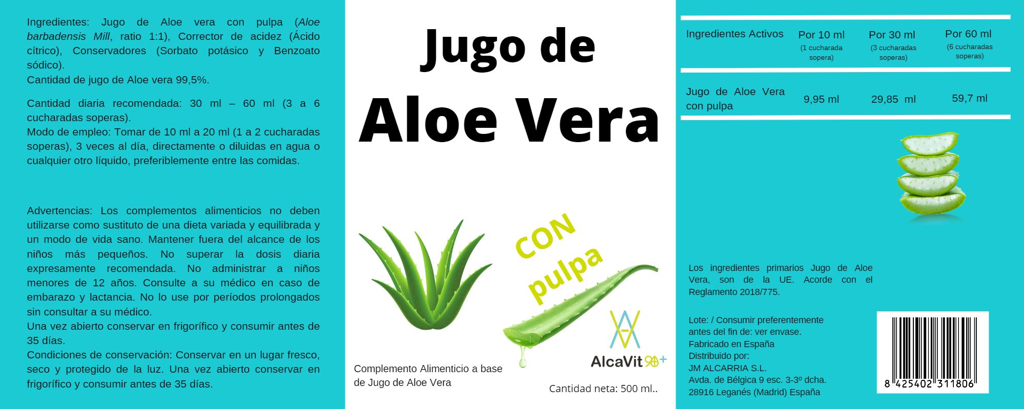 JUGO ALOE VERA 500ML ALCAVIT